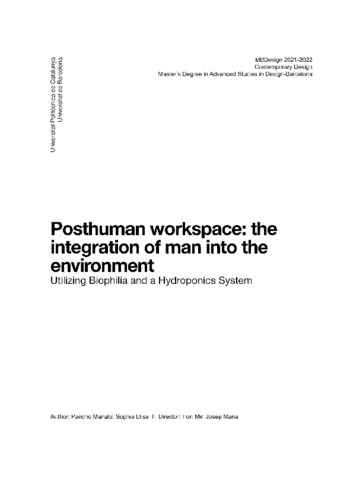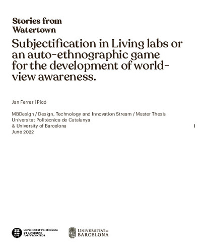 Stories from Watertown: subjectification in living labs or an auto-ethnographic game for the development of worldviews awareness Posthuman workspace: the integration of man into the environment: utilizing biophilia and a hydroponics system Dataisthesis: estat de plena consciència vers la identitat en dades i algoritmes Manifest de la inseguretat: investigació i exploració de la percepció d’inseguretat en l’espai públic quan és de nit, i l’afectació que té segons el gènere