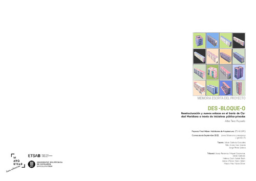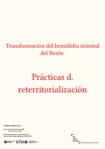 Reactivant el patrimoni agrícola: escola d'especialització agrícola i serveis comunitaris a la Colònia Güell Vall d'Hebron agrari: reinterpretació productiva del paisatge urbanístic al parc Olímpic de la Vall d'Hebron Transformación del hemidelta oriental del Besòs: prácticas de reterritorialización De la fábrica a la casa: torre residencial en la Marina del Prat Vermell Recinte C.E.L.O.: projecte d’un recinte urbà a Sant Adrià del Besòs 404080: recuperació de l’eix industrial de Santa Margalida Especificitat i autonomía: estació de tren a Manresa Preludio a Collserola: ampliación del Centro de Formación del Laberinto de Horta Intersticio: equipament cultural i residència d'estudiants a l'Eixample Teixim Punt Güell: motors urbans, cinètiques metropolitanes Tejidos autosuficientes: nuevos metabolismos en la ciudad existente Archipiélago Fórum: una reconfiguración urbana del ámbito del Fórum Barcelona Arquitectura per a la ciutat borrosa Aves en el Besós: renaturalización del Parc Litoral Nord-est Infraestructura i paisatge: pont com a passeig i equipament, intervenció a La Font del Gos La discoteca com a projecte urbà: projecte de parc i pavellons equipats al barri Neukölln de Berlín El recinto y el jardín secreto: consolidación del recinto del Laberinto de Horta Tejer en verde y gris: consolidación de la colonia de Santiveri: viviendas sociales y talleres Des-bloque-o: reestructuración y nuevos enlaces en el barrio de Ciudad Meridiana a través de iniciativas público-privadas Llevar la ciudad al mar: recuperación de la plataforma marina del Fórum