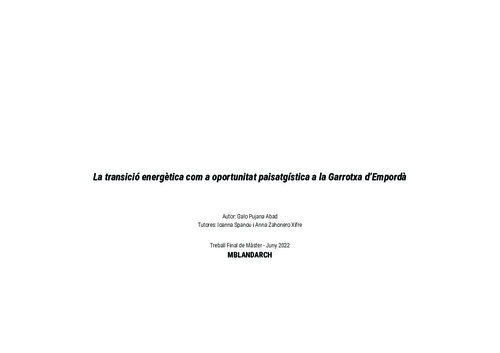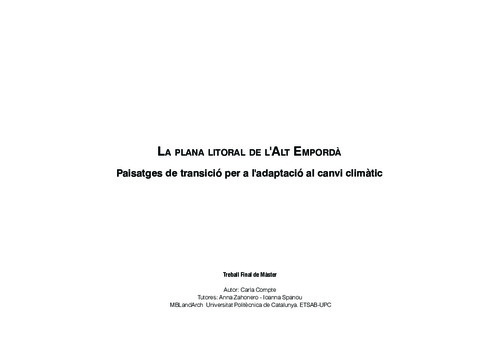 El Cap de Creus y sus masías: una vocación del paisaje La plana litoral de l'Alt Empordà: paisatges de transició per a l'adaptació al canvi climàtic Deveses d’Empordà: paisatges productius resistents al canvi climàtic La vida al marge del camí: estructures de paisatge per al suport de la biodiversitat a La Garrotxa d'Empordà La transició energètica com a oportunitat paisatgística a la Garrotxa d'Empordà Living with the rising tides: strategies, structures, and systems of coastal resilience: the case study of Baie de Somme in northern France